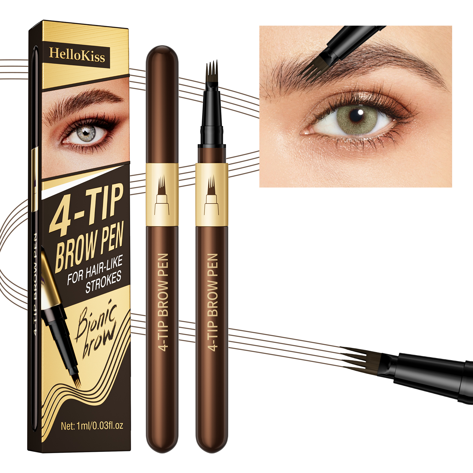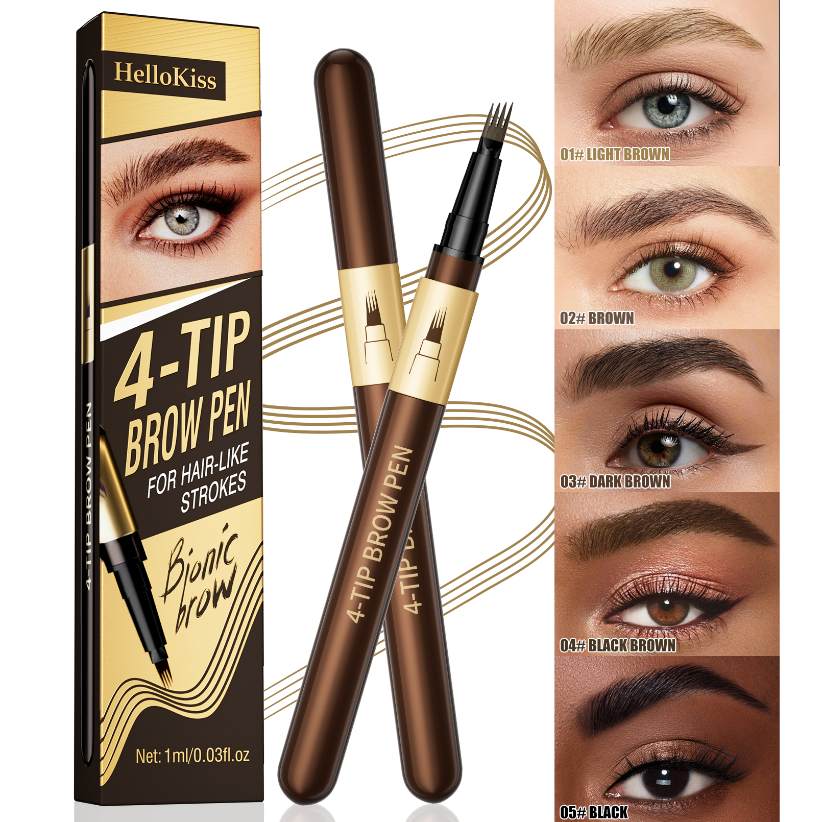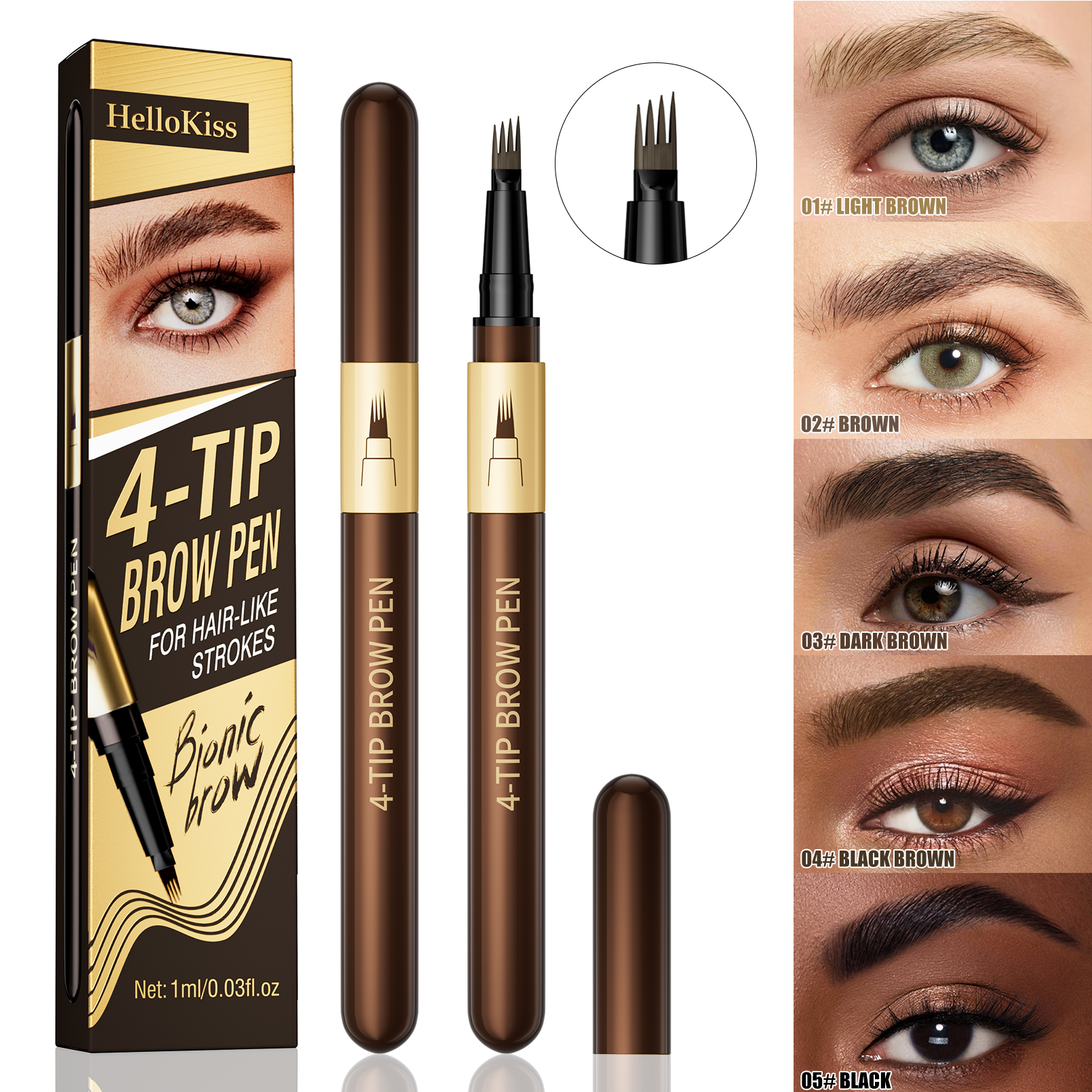 4-Tip Microblading Brow Pen | Waterproof Smudge Proof Long Lasting Eyebrow Pen